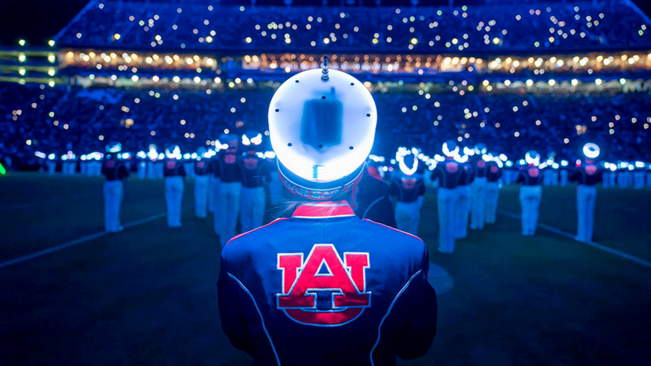 - Light up the band!Two years removed from its award-winning Metallica-themed halftime show, the Auburn University Marching Band returns to Jordan-Hare Stadium on Saturday, Oct. 11, with “Game On,” a video game-inspired performance featuring synchronized LED technology across 343 band members.
